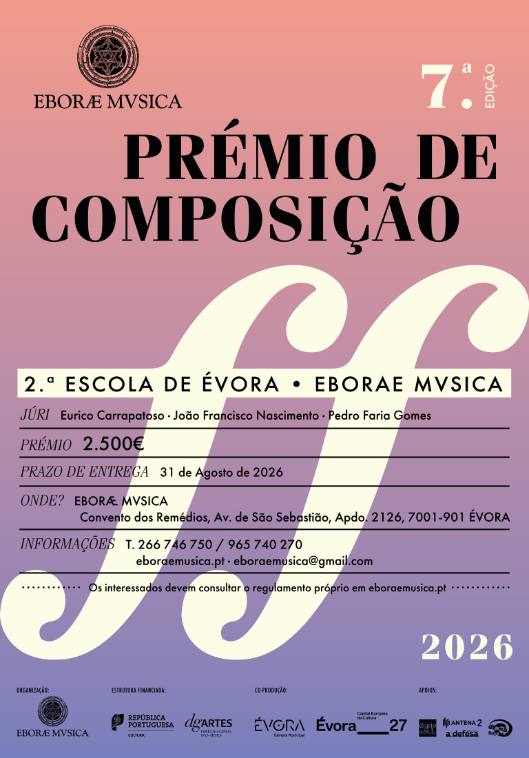 Este Concurso é organizado pela Associação Eborae Mvsica, estrutura financiada pelo Ministério da Cultura – DGArtes, com o apoio de Câmara Municipal de Évora, Universidade de Évora, Antena 2, Diário do Sul, Rádio Diana e A Defesa.
