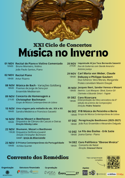 A Associação Eborae Mvsica realiza, nos meses de novembro e de dezembro, o XXI Ciclo